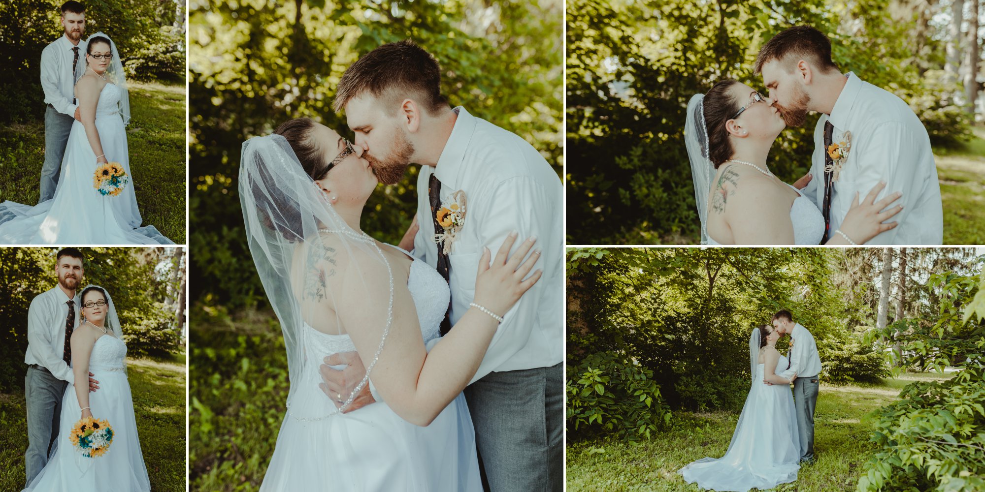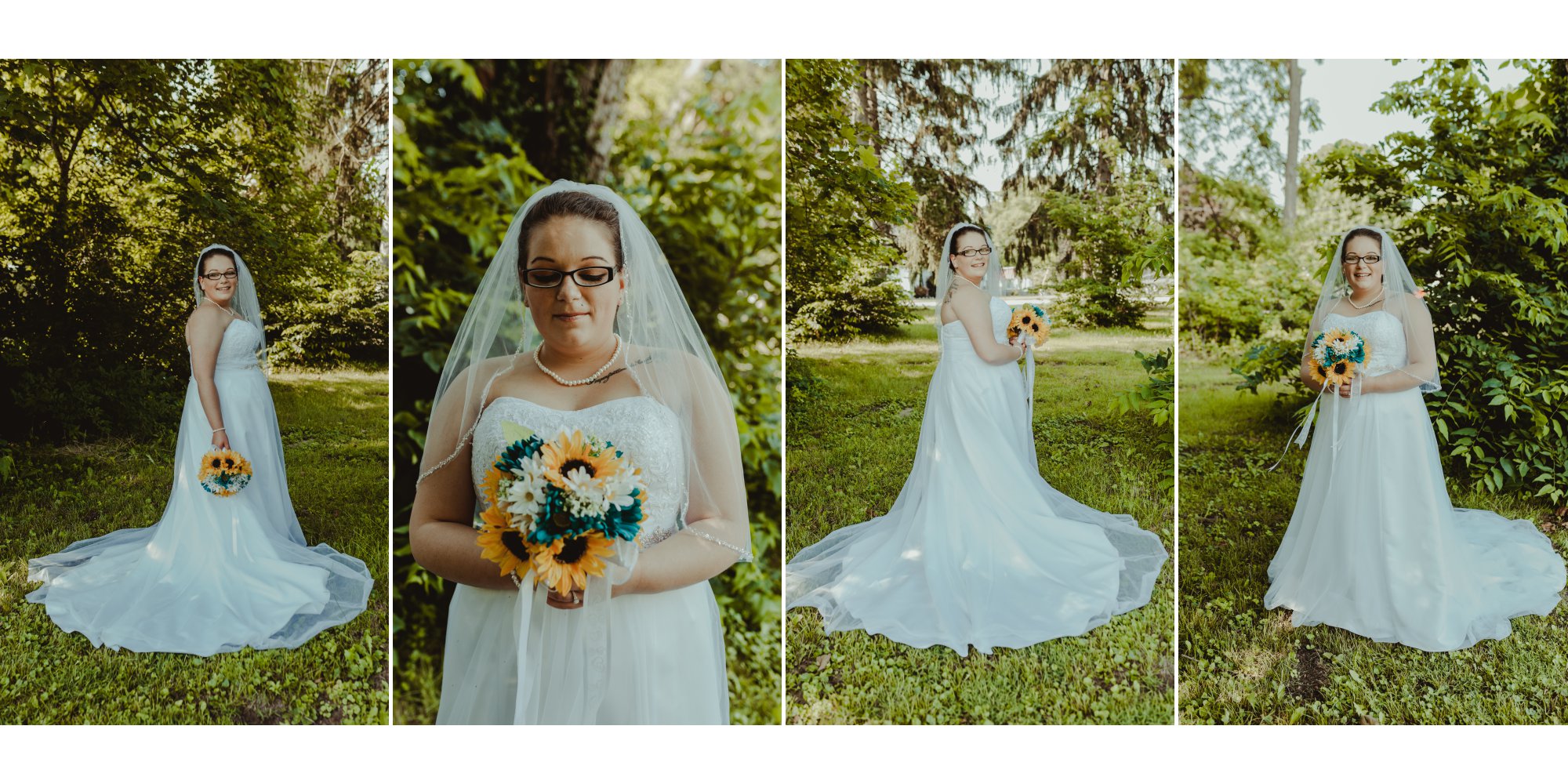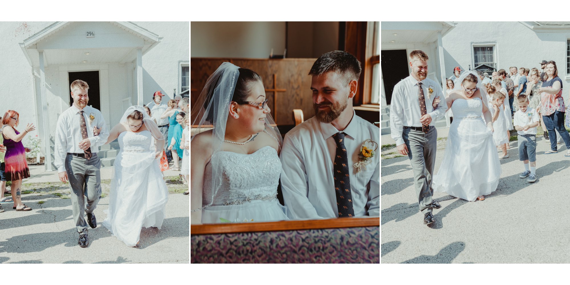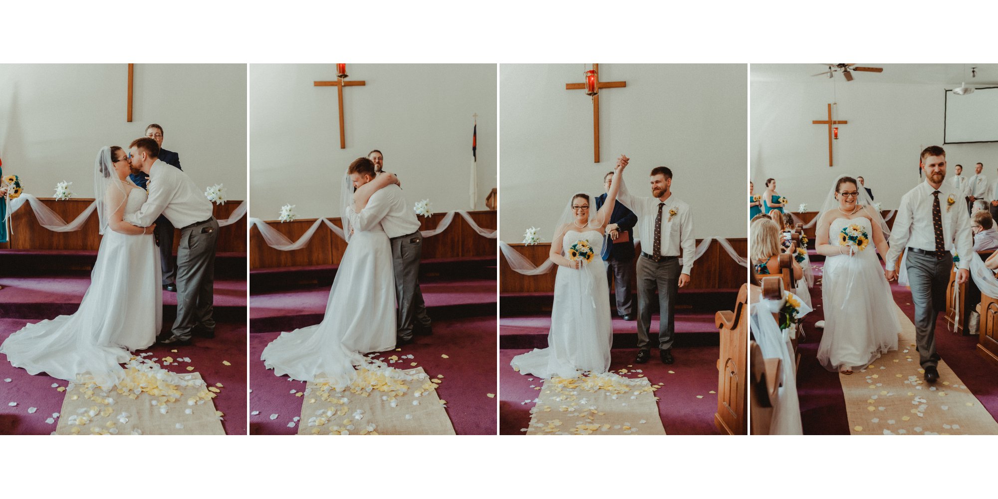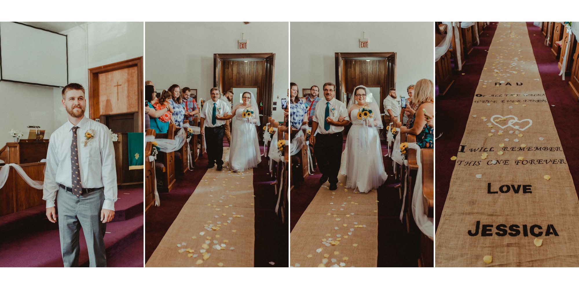 Tom and Jessica’s wedding took place at the Perrysville United Methodist Church in the small, cozy town of Perrysville, Indiana! This rustic wedding featured teal with sunflower accents. The reception was decorated with diy centerpieces that were handmade by the bride’s very own father,Bruce, and step-mother, Jeanette! Their day was so sunny and special and it radiated through with their smiles all day long.